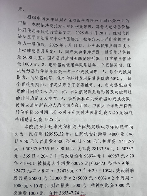 2024年1月25日,武汉市民万洋在一场交通事故中受伤,经交警部门认定,对方驾驶员负事故全部责任。事故造成万洋右胫骨平台粉碎性骨折、左颞骨骨折及听力损伤。经过96天住院治疗及两次手术,其身体功能虽有所恢复,但仍遗留右膝活动受限、持续性耳鸣及双耳听力下降等问题。